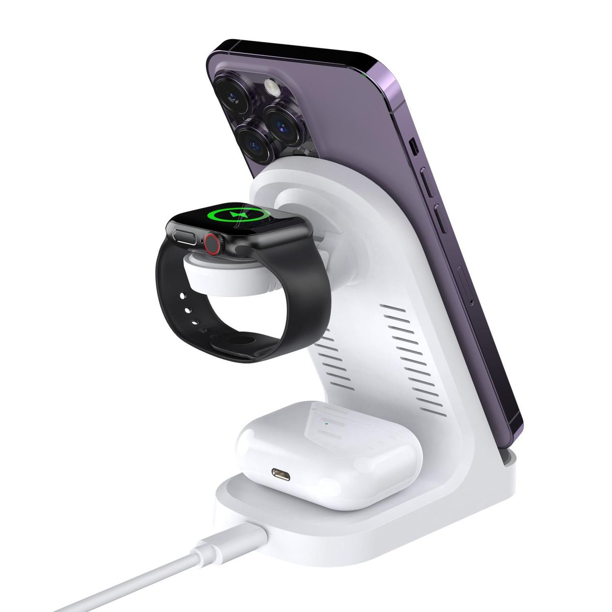 -in-1 magnetic fast charging wireless charger: Powers phone, earbuds, and smartwatch effortlessly with logo imprint option. LEAD TIME: 25 BUSINESS DAYS
