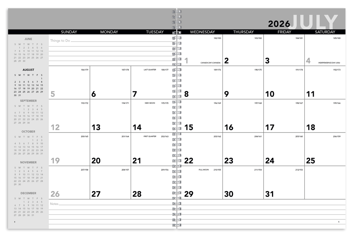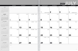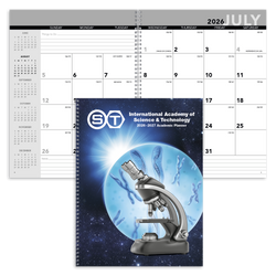 A thoughtful gift for students and educators, this practical planner follows the school year, with 14 months from July through August of the following year. It lies flat thanks to twin-loop binding, and large daily memo blocks provide plenty of room for keeping track of assignments, tasks, and appointments. This planner utilized our 8153 stock calendar pulled from inventory with a full color custom cover. The SFI® label means that materials used for this product have been responsibly sourced.