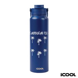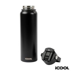 The iCOOL® Glenwood 35 oz. Water Bottle is a stylish and eco-conscious choice for those who value both design and sustainability. Crafted with an inner wall made from premium 18/8 post-consumer recycled stainless steel, this reusable bottle features double-wall vacuum insulation to keep your beverages at the perfect temperature, whether it's ice-cold coffee or freshly brewed tea. The screw-top lid offers two drinking options: a sipper spout for quick hydration and a flip straw spout for relaxed sipping, making it easy to stay refreshed while minimizing spills. The swing handle ensures a comfortable, secure grip while heading to the gym or navigating an adventurous road trip. BPA-free and FDA-compliant. A portion of all proceeds is donated to Shelter to Soldier™, a non-profit organization that rescues dogs to train as service animals for veterans in need.
