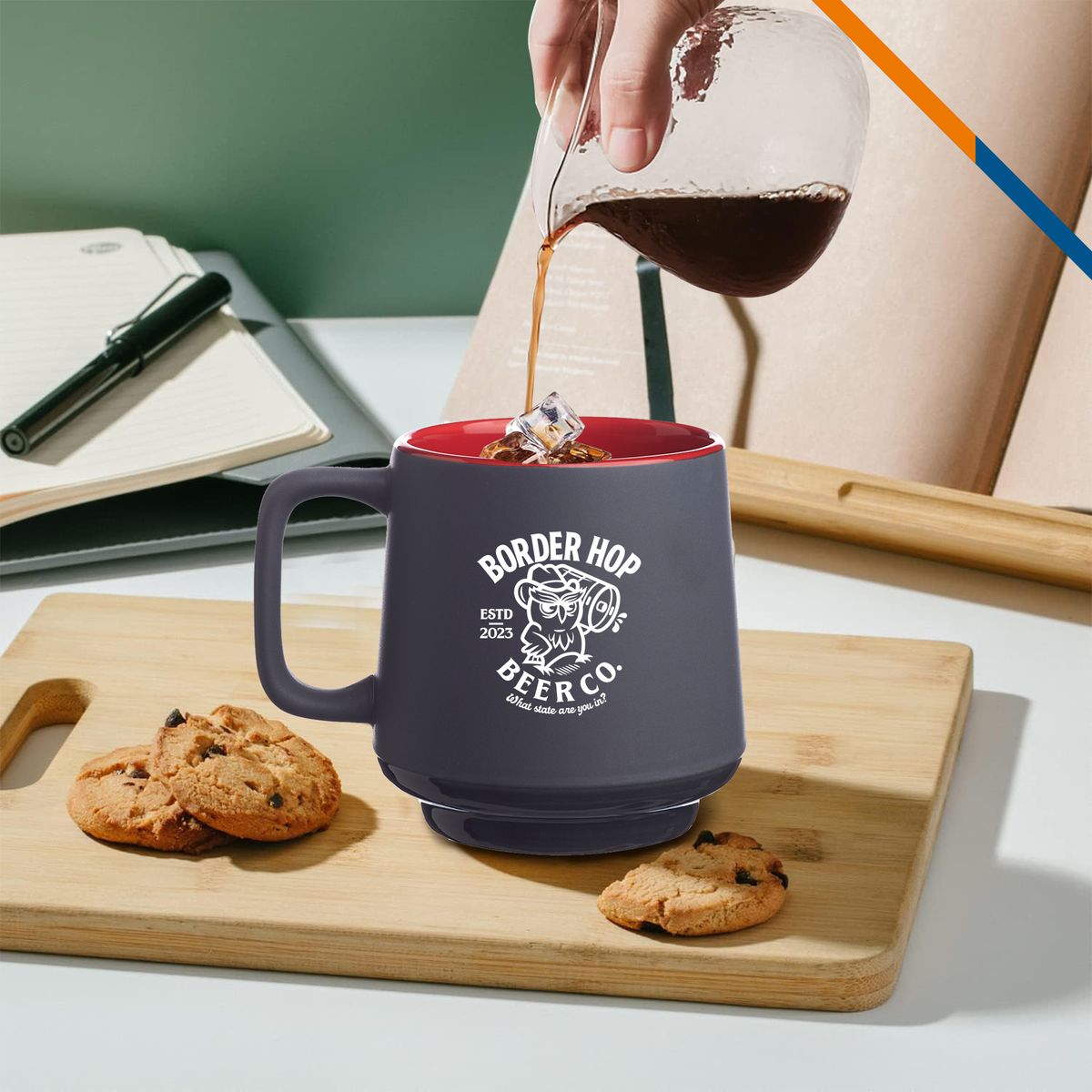 Keep a lasting impression with your logo on Samir Stackable Ceramic Mug! This 12 oz. mug has matte gray finish with pop color interior to add a touch of elegance to any table setting. Stackable design allows up to 4 mugs on a row. Choose a color to match your brand and imprint company logo or marketing message on it! Perfect for everyday dining in house, office and cafe. 3 days rush for 1 color imprint available upon request. Imprint drinkware only can be hand wash.