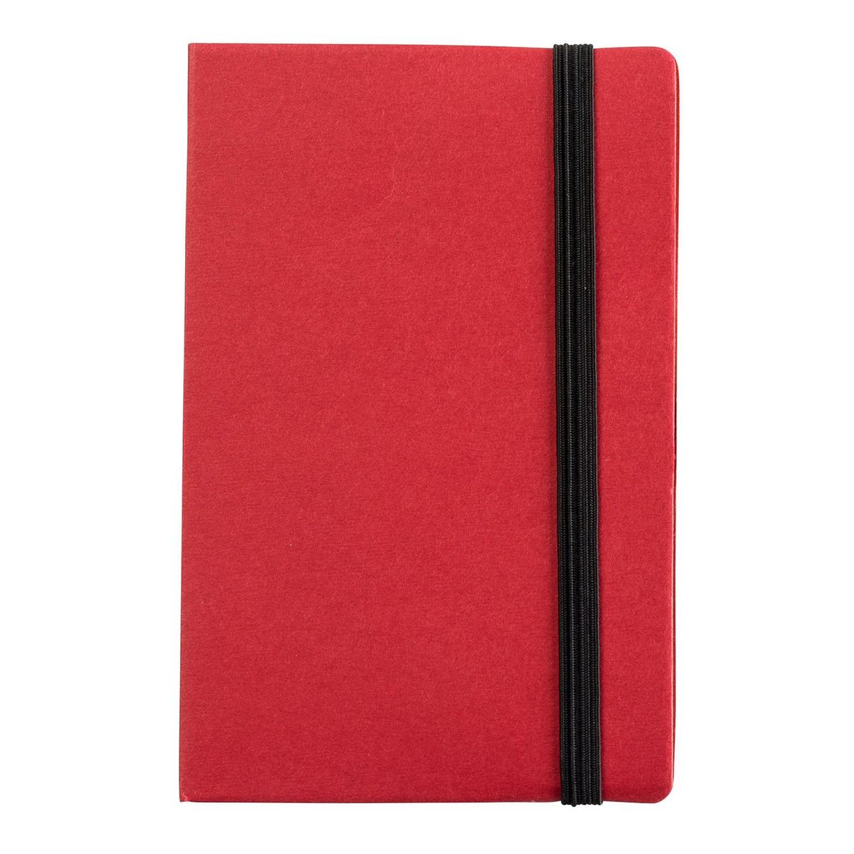 This booklet has a grainy cardboard cover with a business card pocket. Includes 1 yellow sticky note pad and 5 colors flags. Each pad has 25 sheets. Elastic band closure.