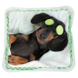 Illustrate delightful relaxation with our Chill Square Aqua Pearls™ Hot/Cold Pack. Featuring a preprinted image of a charming Dachshund, with cucumber slices covering it's eyes, to be branded with your logo for a personal touch. Enjoy soothing relief with warmth by microwaving or coolness by placing in the freezer. Certified safe and reusable, it's easily cleaned with mild soap and water. Safety reports for Pearl beads are available upon request. Use instructions are printed on the item.