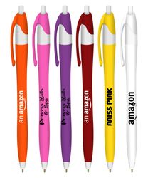 Union Printed, Colored "Elegant" Click Action Ballpoint Pens, Attractive Designed Colored Barrels with White Trim for an Elegant Look, Features a ergonomic Style so it's very comfortable to write with it! Strong Pocket Clip Keeps it handy and in place! A Perfect Give-away Low Cost Promotion, Never a need to Shop for Close-outs. Available in 10 Fun color options colors. chose Single or Assorted Colors. Decorated in our Union Shop - Union Bug Available at No Charge!