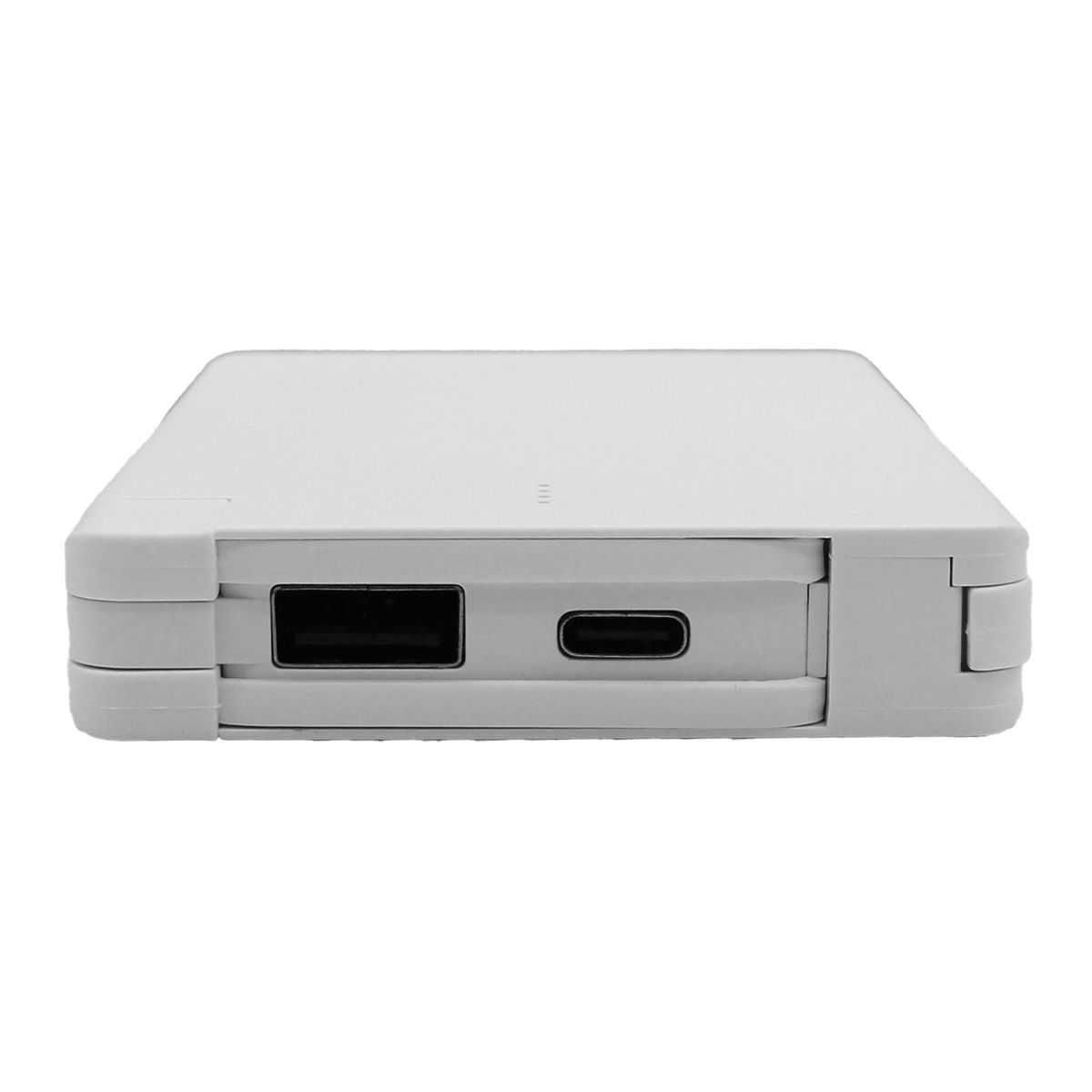 Simply twist the wrap-around universal charging cable to switch from Lightning to Micro USB connector. This power bank provides an additional USB and Type-C input port to enable charging multiple devices at once.